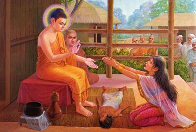 她只好把儿子的尸体抱到坟场,做最后的道别,然后回到佛陀那里。你带回芥菜子吗?佛陀问道,不!她说:我开始了解您给我的教法,悲伤让我盲目,我以为只有我一个人受到死亡的折磨。佛陀问:你为什么又回来呢?她回答说:请您开示死亡和死后的真相,我身上是否有什么东西是不死的?