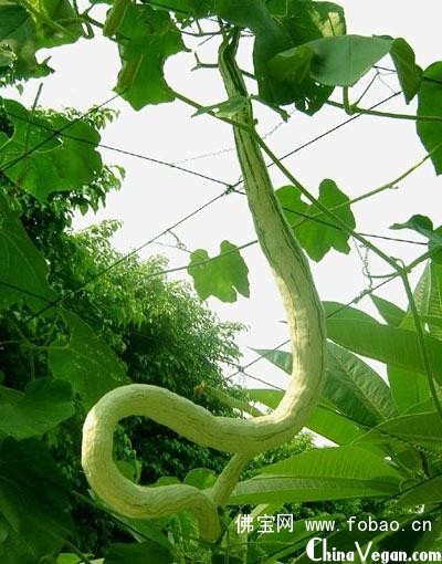 蛇瓜,别名蛇豆、蛇丝瓜、大豆角等,葫芦科栝楼属中的一年生攀缘性草本植物,原产印度、马来西亚,广泛分布于东南亚各国和澳大利亚,在西非、美洲热带和加勒比海等地也有栽培,中国只有零星栽培,近年来山东省青岛地区种植较多。蛇瓜以嫩果实为蔬,但嫩叶和嫩茎也可食。