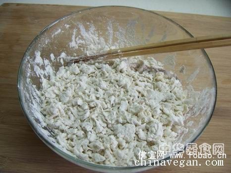 3. 把面粉拌成面疙瘩。拌面疙瘩的方法以前写过,直接粘过来供参考。
