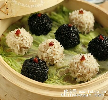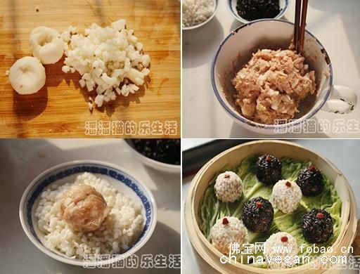 原料:素肉馅200克、马蹄4个、糯米60克、黑香米60克