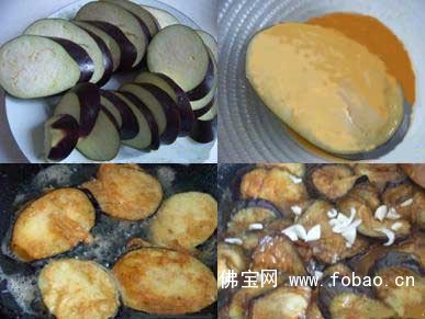 3、将切好的茄片两面均挂上调好的′粉糊;