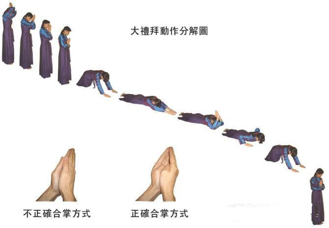 拜佛时,要观想我身虽未成佛,然而心性却是充满法界.现在于一位佛前拜佛,同时亦遍礼法界一切诸佛.不是单单拜一位佛,而是在每一尊佛前,皆有我的化身顶礼叩头,同时在供养诸佛菩萨.所谓“一切唯心造,你这个心是周遍法界,这种礼也是周遍法界的,你这种修行也是周遍法界.所有三千大千世界都包括在法界之内,身尽虚空遍法界,你所行的恭敬礼,尽虚空遍法界,你所得的功德,也是尽虚空遍法界。