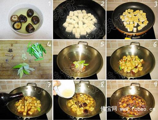北豆腐1块 干香菇6朵 青蒜(或蒜苗)3根