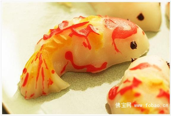 最后用小瓷勺盛了小块巧克力,用微波10-15秒融化,然后用牙签挑了在鱼的眼眶里画出眼珠。