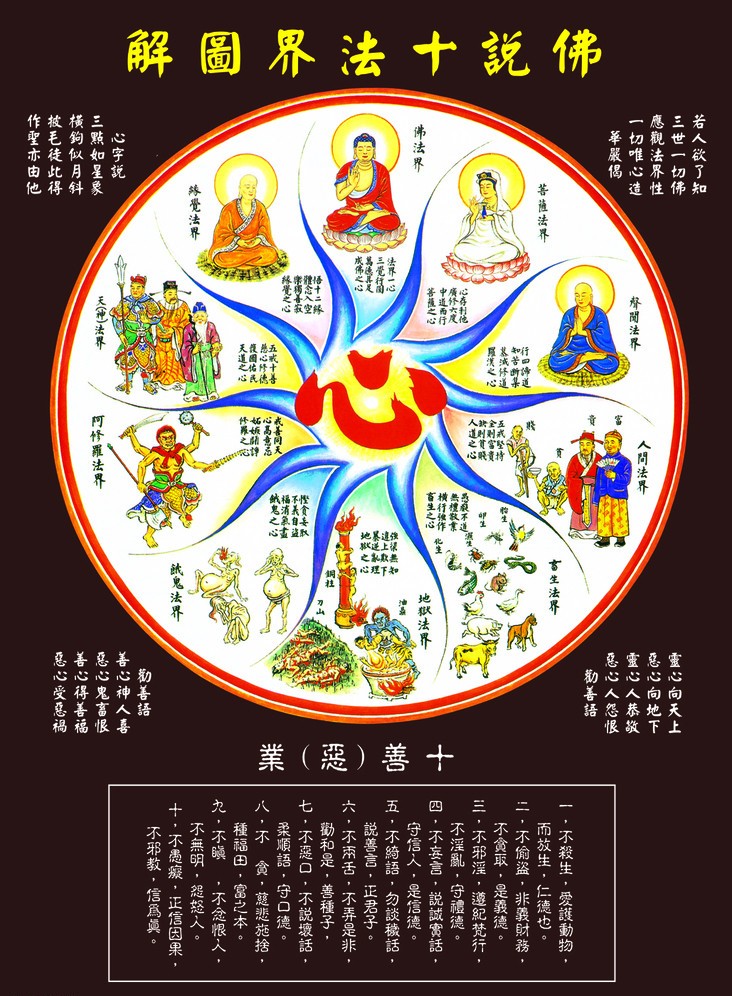 天神法界:五戒十善,慈心修德,护国佑民,天道之心。