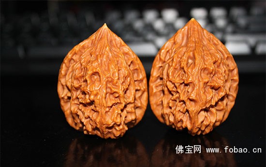 物以稀为贵,早先的核桃更是因为其“稀有性”而身份大增,试想啊!核桃要求成对,当年的果落下之后,不少都遇到合适的环境发芽了!没有发芽的也因为果肉汁水的腐蚀、染色,侵蚀了果核的本质,形成深色的阴皮,其对盘玩后的品相影响是很大的,有的核桃好不容易凑成了一对,却发现其中一只有阴皮,所以在当年能“恰巧”配对的核桃,无不是真正的“千里挑一”、“万里挑一”,大家现在见到的许多几十年、上百年的老核桃皮色发黑、发浑浊的暗色,就是因为过度成熟和阴皮的原因影响皮色造成的。因为能捡到的落果中百分之九十以上都多少带点阴皮的属性,所以那时候玩家对于阴皮的研究也是很深入的,什么样的阴皮能玩出来,什么样的阴皮没有盘玩价值,在老玩家的眼中,第一时间就能判断出来。有些阴皮形状怪异的,还被贯以各种名头,什么“胎记”、“阴阳脸”、“鬼脸儿”、“刘关张”之类的,也属于喜欢收藏异形的玩家趋之若鹜的标准形态!温柔就曾见过一位老玩家收藏的“刘关张”三枚老铁,其中“刘”是稍早落果的灰白色皮质,正像刘备面如冠玉;“关”则为全身性的整体红阴皮,就像关羽的红脸。而“张”为纯粹的地闷黑。三枚核桃放置在一起,形态各异,真有那么几分桃园三结义的味道。