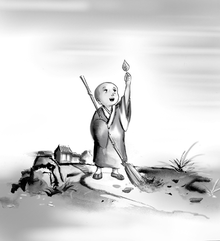 在众僧羡慕和钦佩的目光中,小和尚坚毅地走出了寺门。