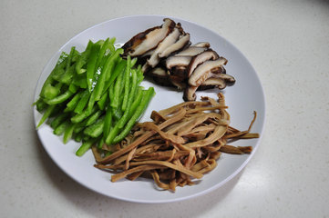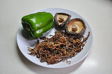 虽然从理论上说干菜和鲜菜的差别只是水份的多少,但真正吃起来却好像是完全不同的两种东西,比如干香菇和鲜香菇,干豆角和鲜豆角,味道和口感截然不同。干菜的优势是耐储存,不受季节和地域的限制。平时家里备点干货,在冬天蔬菜品种少的时候,可以拿出来变变花样。我觉得干菜永远比鲜菜更让人回味无穷,或许是因为吃得少,或许是因为浓缩的都是精华吧。 笋干香菇炒青椒(图片来源:笨鸟和土豆泥) 原料:干笋丝、干花菇、青椒(或辣椒) (图片来源:笨鸟和土豆泥) 做法: 1. 干笋丝用清水浸泡一夜,清洗干净,在开水里滚煮10分钟,捞起沥干,备用。 2. 干花菇用温水泡发,切成丝;青椒洗净切成丝。 (图片来源:笨鸟和土豆泥) 3. 热锅倒油,放入笋丝和香菇丝煸炒两分钟,加老抽调味上色,再放入青椒丝,再翻炒一分钟,至青椒断生,洒适量盐即可出锅。