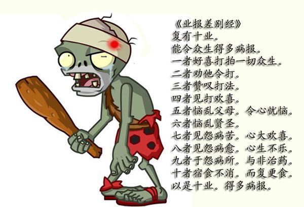 目连答道:你以前为人,急躁暴孽,又不能修炼忍辱。常以棍棒打众生的头,让众生头痛难忍。前世恶业的种子如今开花结果,现在受的是花报,将来严重的果报是在地狱里受苦!】