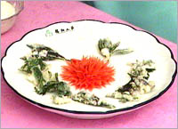 2、 坐锅点火倒油,待油3成热时,将百草挂上蛋糊放入锅中,转小火炸至浅黄色捞出摆入盘中即可。