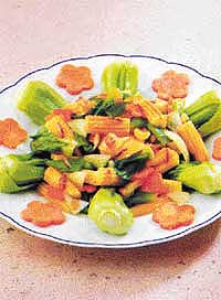 各式节令蔬菜(胡萝卜、洋葱、青椒、玉米笋、青菜等)400克(切成小块或薄片)