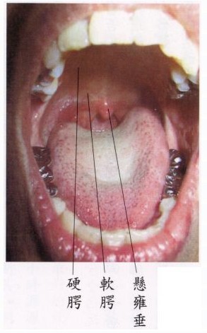 当舌尖顶‘上门牙后约一、二公分处’,‘舌面’和‘软齶’保持距离(部位见下面图示),而放松时,立即会觉得‘悬雍垂’(俗称喉咙钟)后方之咽喉,通风清凉,呼吸道有如‘拓宽’而出入息通畅。越放松、越能感受呼吸时顶上清凉,不昏沉。
