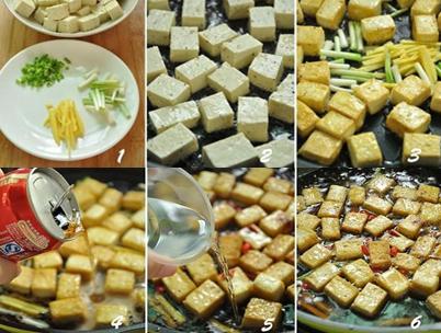 原料:老豆腐(北豆腐)、可乐、生姜、小葱、盐、黑胡椒、老抽、小辣椒
