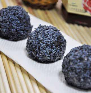 6、兰香子(明列子、罗勒籽)清水过一下,粘在糯米球上即可。