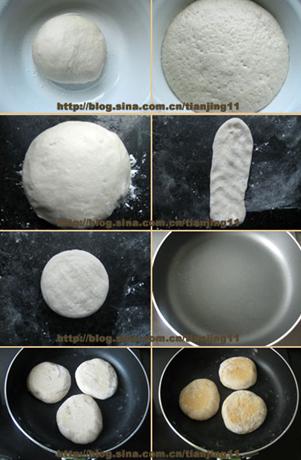 3、将所有的饼静置15分钟。平底锅烧热不放油,将饼放入,小火烤至面饼涨发,两面金黄。中途一定要勤翻面。