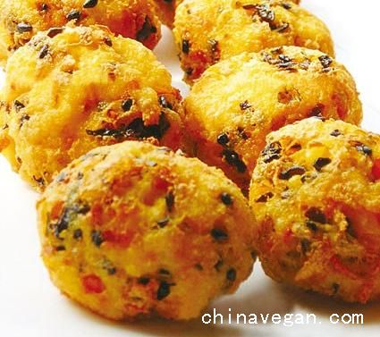 3、将豆腐泥搓成小小的圆形。