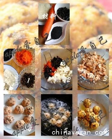 材料:老豆腐、胡萝卜、熟黑芝麻、黑木耳、色拉油。