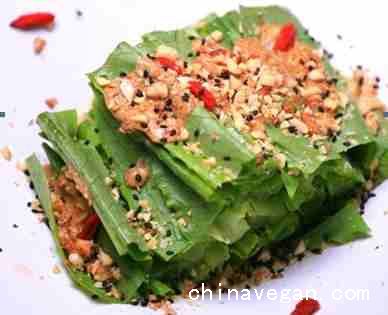 3、芝麻酱用水泻开,加少许盐、蘑菇精、醋、红油调匀淋在油麦菜上撒黑芝麻,杏仁碎,泡开的枸杞即可装盘