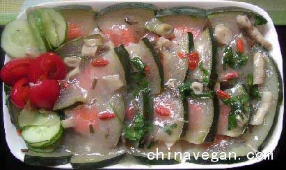 材料:冬瓜、圣女果、黄瓜、笋、香菜、枸杞子;