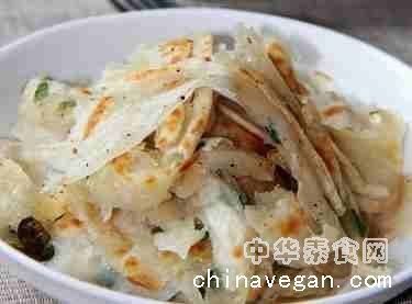 4、平锅油热后把饼放下去煎,煎到两面金黄即可。