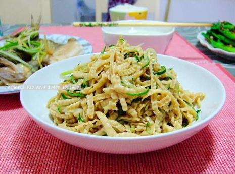 丝腐竹是豆制品,味道和腐竹有些类似,只是做法更简单,也挺好吃的功效:清爽凉菜凉拌丝腐竹的做法:材料:丝腐竹,黄瓜。调料:蒜末,盐,醋,香油,蘑菇精,葱丝。做法:1、丝腐竹用热水泡开后过凉水,控干水备用; 2、黄瓜切丝,将所有的材料混合拌均就好。