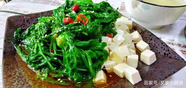 食材:荠荠菜、嫩豆腐、葱、蒜、熟芝麻、辣椒、生抽、醋、盐、花生、食用油二、锅里水开,把豆腐放锅里绰下水,减少豆腥味;洗净的荠荠菜也绰水后控水盛出。三、锅里油热后,花生炸熟捞出,接着放入花椒、葱蒜、(辣椒可以根据自己口味而定)煸炒香后控油捞出。四、最后热油浇入荠菜上,撒上熟花生、熟芝麻,倒入生抽、盐,拌匀即可食用。