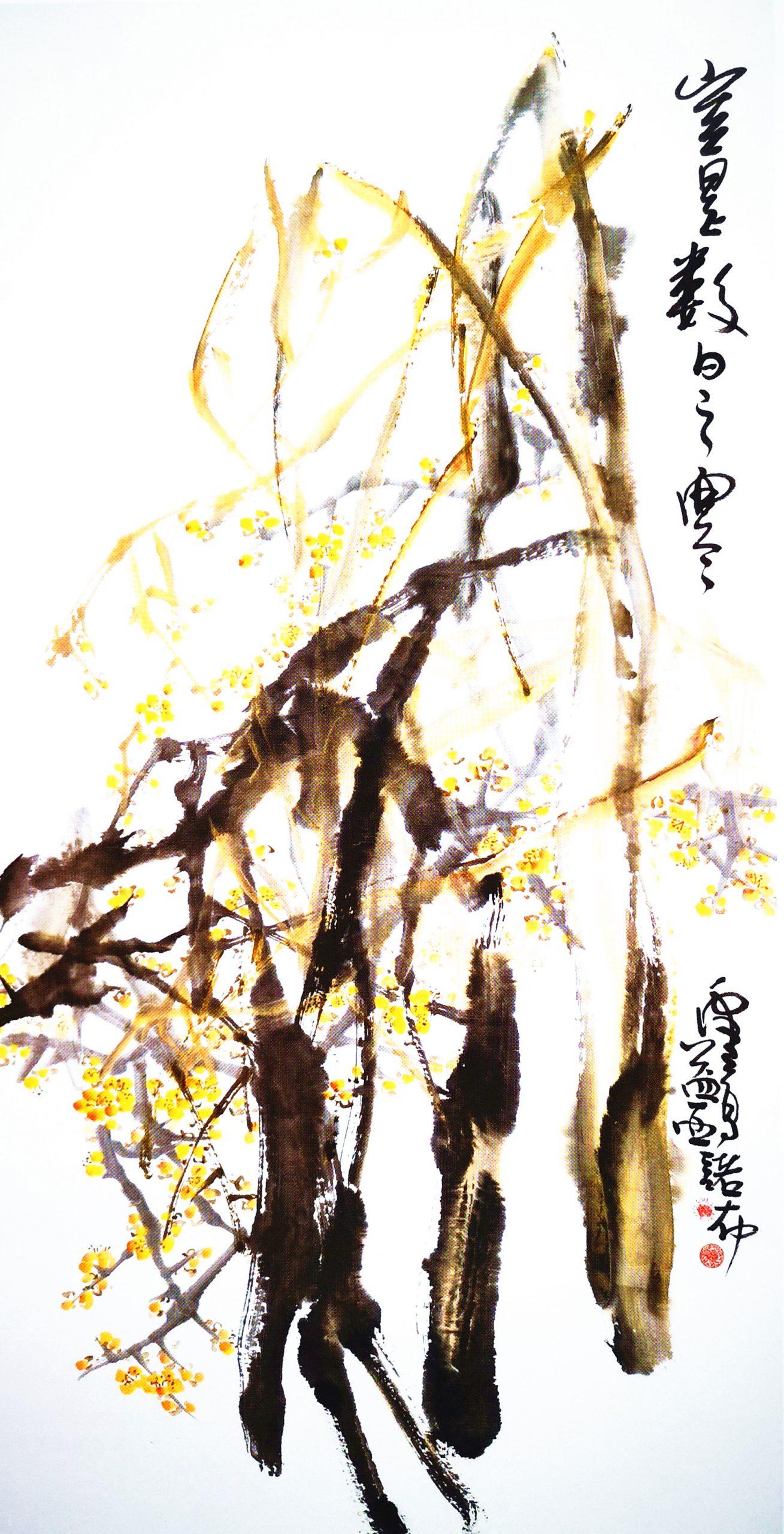 梅花笔意无言高雅舒服不是画家的点染,不是书家的代言,散放着文学的才华,透射出书卷的十足。它充盈着渊博学识和微妙,追高古典雅的劲道,是老辣功底的宣告。似乎是大家名门的书斋,又好比古玩文物的案台。啊!就这样出来,所以无猜,看来自在。不,你错将桂冠乱戴,你应放下疑猜,这没有凡间的尘埃,不,有点笔墨乱排,是自在的情怀。不,自在没有情怀,是众生因缘的所在,是天然自在的花开,啊,是自在的花开!