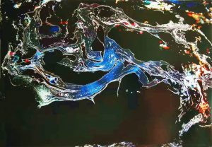 深䆳暗黑之中现出一抹流光,蜿蜒伸展而来,琼枝舒发,如水晶琉璃剔透莹洁,闪烁着点点星芒,静默中宣泄出蓝白红黄,色彩妙丽互相滋养升华,灵动、流转,色达空灵的境界。