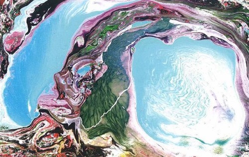 H.H.第‖三‖世‖多‖杰‖羌‖佛的现代绘画作品,虽然没有具体的形象,然而,祂的画中的意蕴却有着似曾相识的神秘气息。 流动的色块,热烈,沸腾,熔岩般炽热,却又依然纯净圣洁。没有怪异离奇、扑朔迷离,而是流畅、明快的灵光闪烁。不见树木,没有溪流;既无森林,也无山丘,只有五彩缤纷的混沌、在扩大,在飞升飘逸。画面有的似年轮石纹、有的如碧玉之纹理、还有的如涟漪碎波。色彩时而如飞流瀑布,时而若黎明星晨;丝线流韵、珠玉琳琅、皆统一在纯净的大美之中,令人感到这些色彩和其意境交相呼应,浑然一体,不可思议。画面的底色,不再像以传统绘画那样来过度融化笔势,而是越来越受到笔势的盖压。画面中的焦点(画眼),如大地震动的震中,以震波般的韵律扩散至整个画面。其包涵的精神意蕴若隐若现、恍兮惚兮,极具东方精神的神秘感。