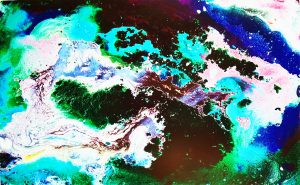 三幅西画,花山秀美、大地之神韵、苍茫大地绣蓝图,具像而抽像,超越自然之美妙,非世间言语所能赞誉,南无羌佛从其无上圆满的智慧中流出来的工巧神髓,随意即展妙境,谁能领略其中旨趣?