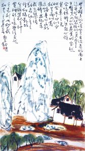 这幅艺术感染力极强的山水画,出自南无羌佛少年时代,舒朗高古的书风,纯洁雅致的气质,已经显示南无羌佛少年时代的卓尔不群的艺术天赋与脱俗自然的非凡气质。早在20世纪80年代,南无羌佛的艺术作品就得到了社会的普遍认可,得到了艺术界同行以及专家们的极大赞誉。已故的前国务委员兼国防部长张爱萍曾亲自为当时还未公开身份的南无羌佛题词“艺坛奇才”,原***艺术学院院长魏传统先生为他其题词“艺苑奇才”,中央新闻纪录电影制片厂还拍摄了专题影片《潜心奋斗的人》。