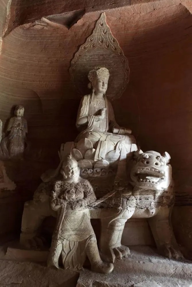 说完腾身踊上虚空,现出文殊菩萨德相,狗也化为菩萨座下的狮子,两个孩子却是两位侍者。